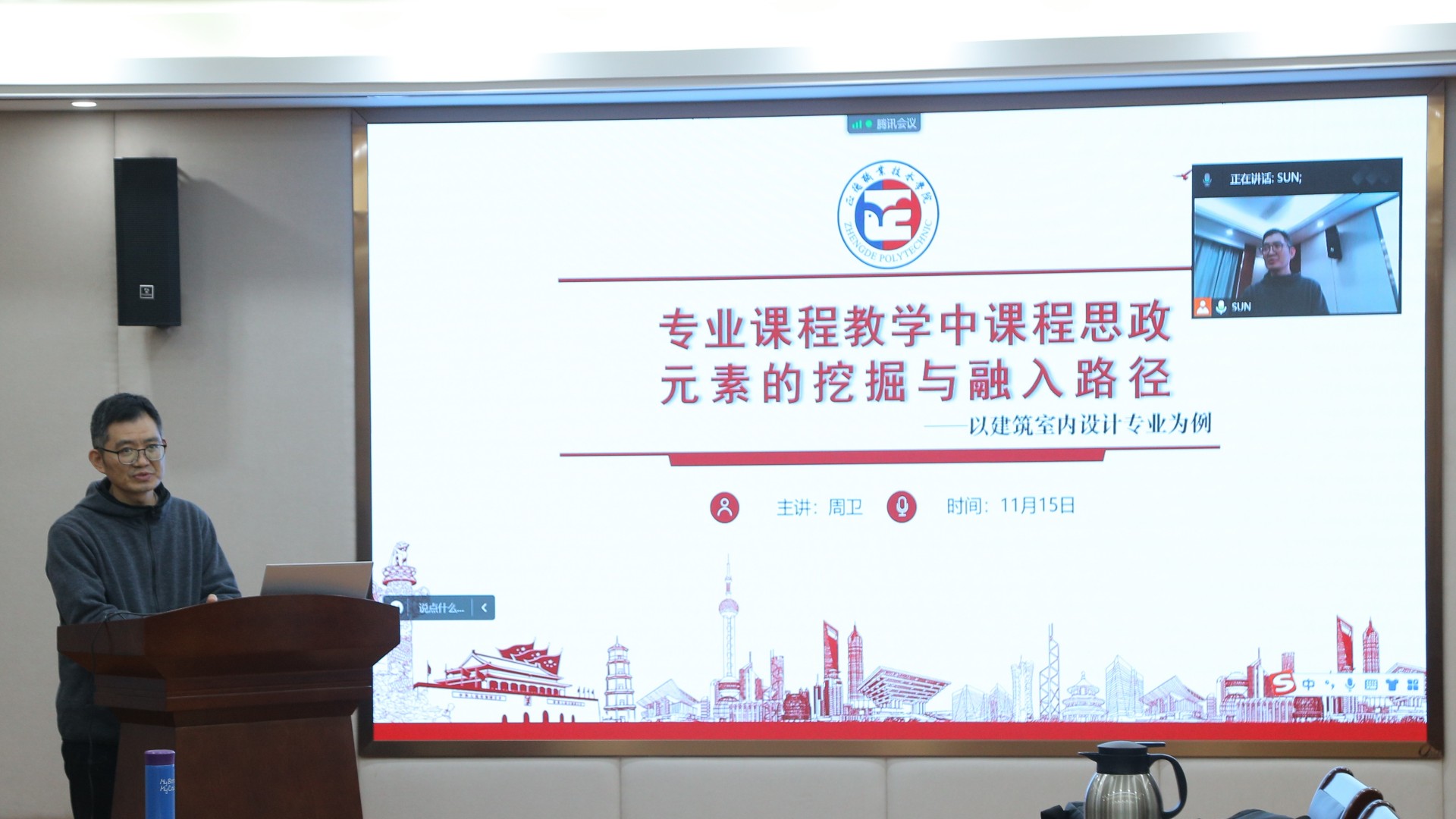 2022年11月15日中午,教师教学发展中心特邀请麻豆传媒 “教师发展师”、艺术设计与建筑工程系周卫老师做“琴湖论教:课程思政专题培训”。会议在5201举行,同时开通腾讯会议。教务处副处长张丽娟主持会议,线上线下共计50余位老师参加。