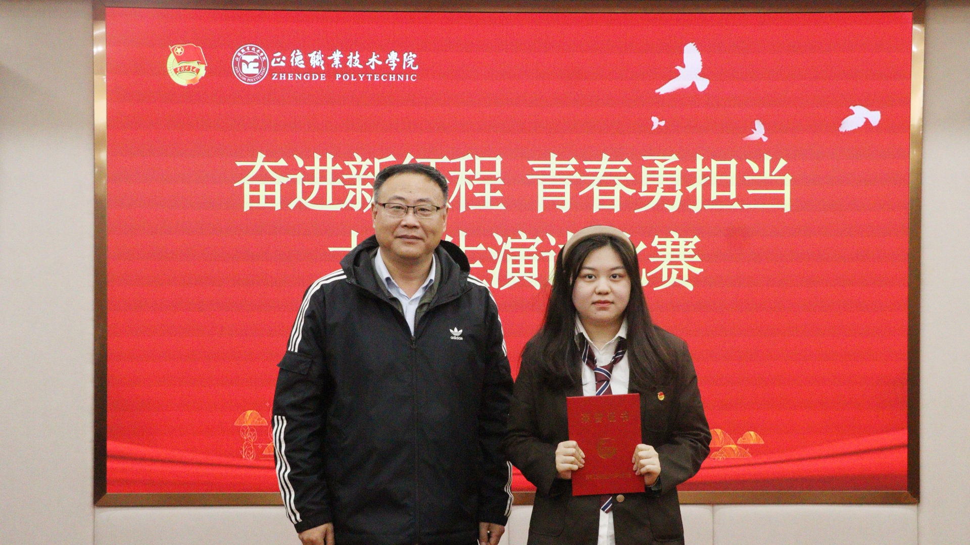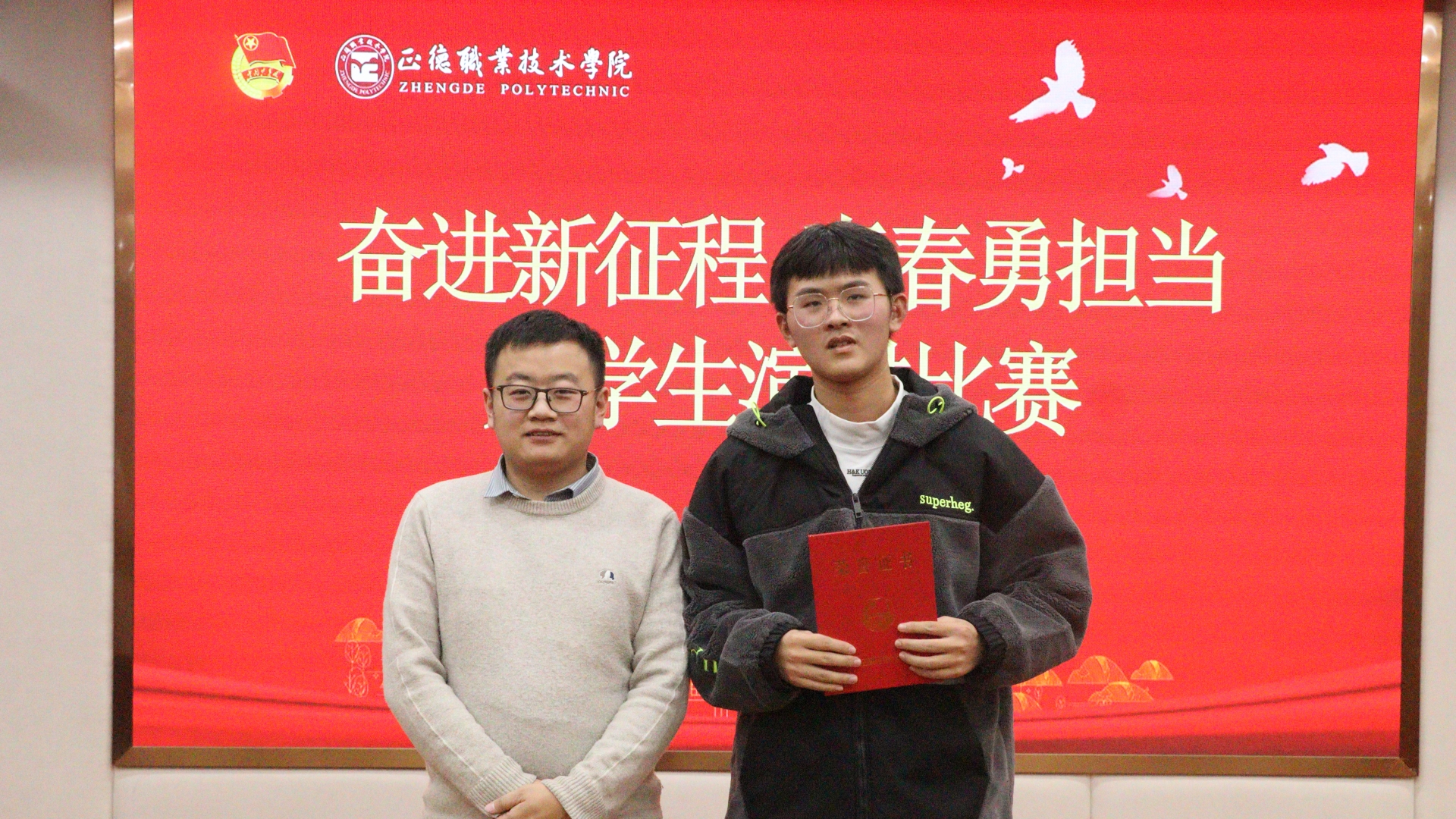 比赛现场,选手们围绕“奋进新征程,青春勇担当”的主题,或激情澎湃、或深情含蓄、或娓娓道来,诠释了自己对时代使命、对中国复兴、对青春年华、对中国梦的理解,从自身的成长、生活经验、学习体验出发,讲述着中国共产党领导下新时代青年们奋发向上的故事,用饱满的热情和真挚的感情表达了新时代青年的坚定信念,用激昂的斗志和铮铮的誓言诠释了当代大麻豆传媒 的初心使命,充分展现了正德学子积极向上、自信从容的精神状态。