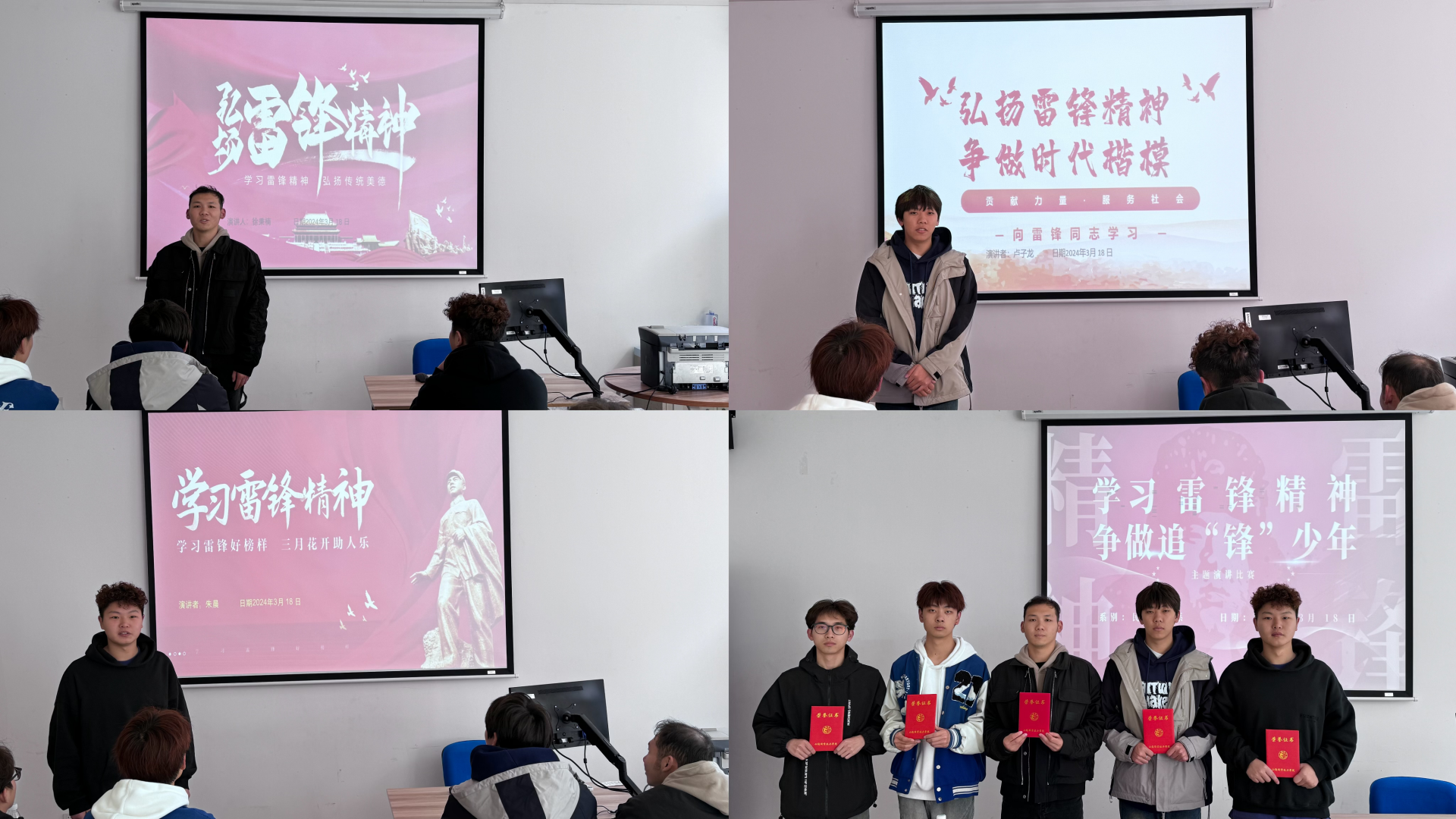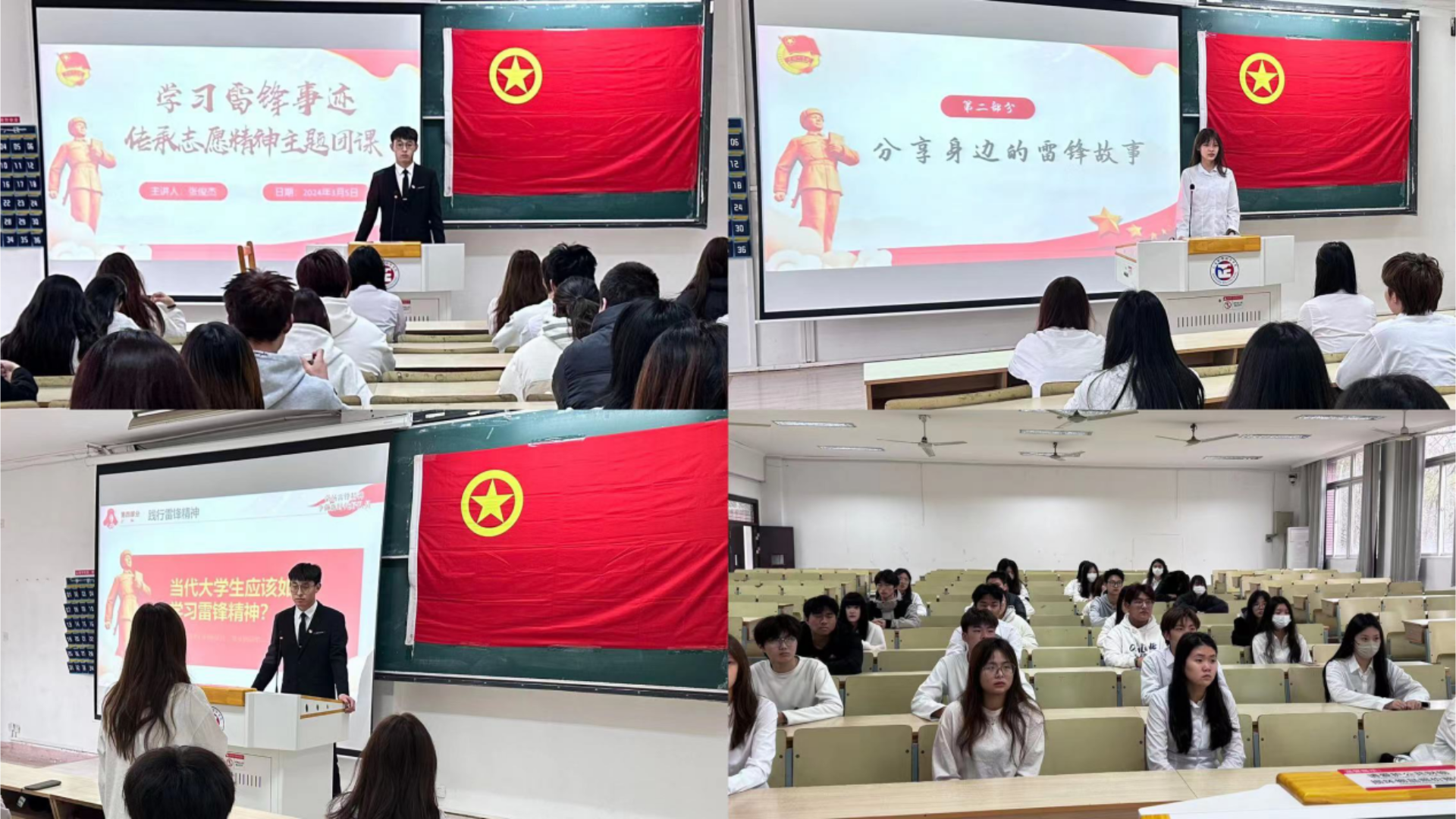 一、开展主题团日活动。主讲人张俊杰带领大家分别从“认识雷锋、雷锋精神、学习雷锋、雷锋在身边、雷锋名言体悟”五方面进行全方位深刻学习。团课过程中,同学们积极发言,以小组讨论与心得分享的方式,深入探讨了在日常生活中如何身体力行地传承雷锋精神。