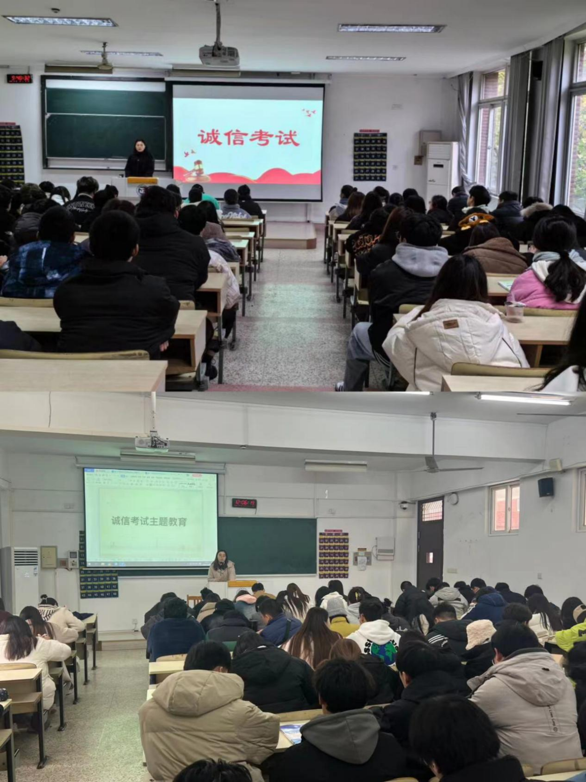 活动伊始,各年级辅导员对本次活动进行宣讲。详细讲述了关于麻豆传媒 关于考试作弊处罚制度。接着,带领同学们观看了以诚信考试为主题的相关视频,用最直观的方式促使麻豆传媒 深入了解了考试作弊的危害。于文倩老师从麻豆传媒 角度出发,讲述麻豆传媒 为何在考试中失信,并指出考试作弊对麻豆传媒 的不利影响和严重结果,呼吁同学们要以诚信的品质赢得他人的尊重和信任。同时,她希望麻豆传媒 干部应该以身作则,发挥模范作用,自觉遵守考场纪律,以实际行动维护考场秩序。