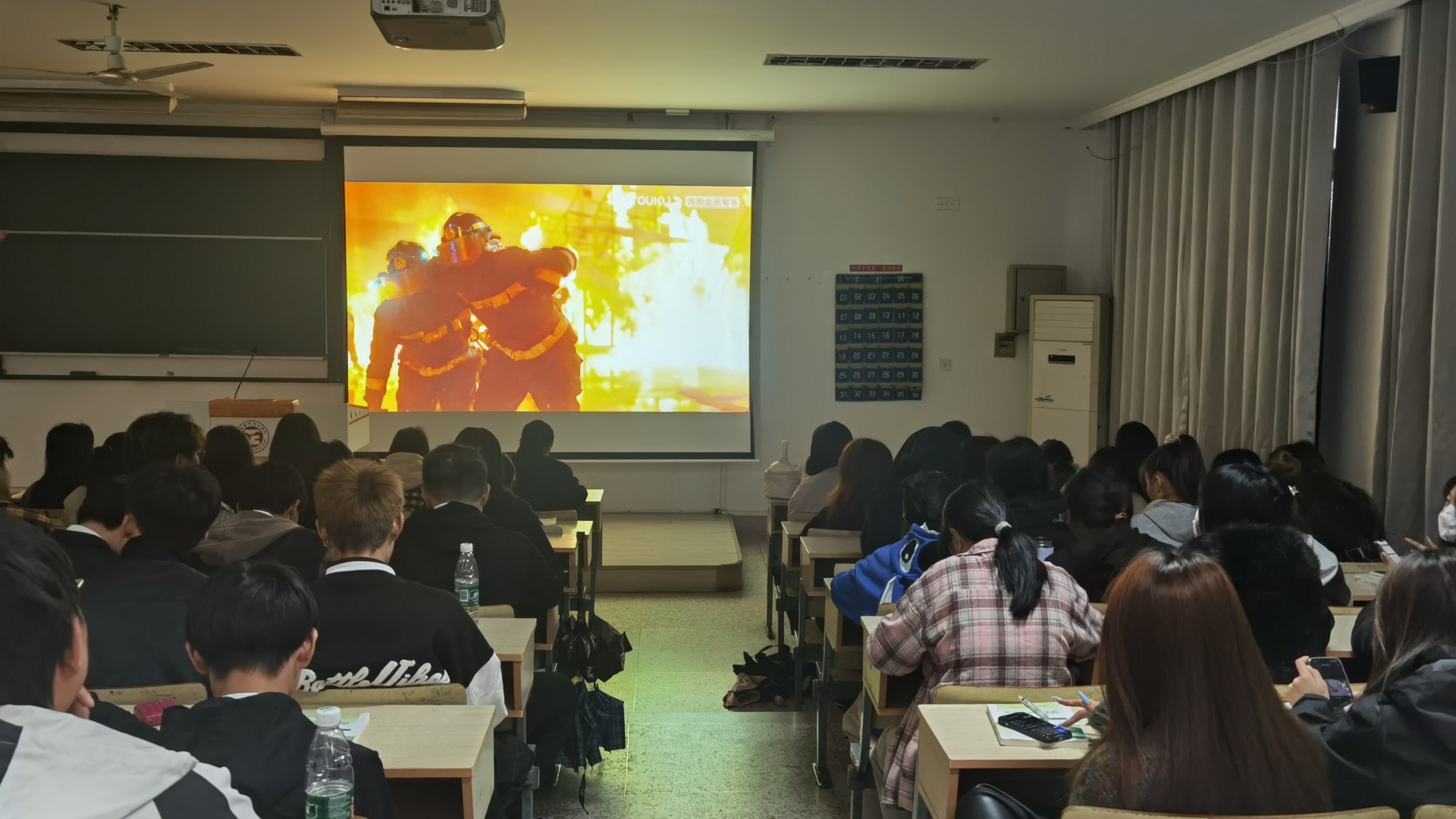 观影过程中,同学们被精彩的剧情深深吸引,被电影中所表达的感情深深震撼,影片结束后,同学们互相交流观影心得。通过参加此次观影活动,不仅使同学们在学习生活之余丰富了精神生活,而且提高了同学们对火灾的防范意识和自我保护的意识。