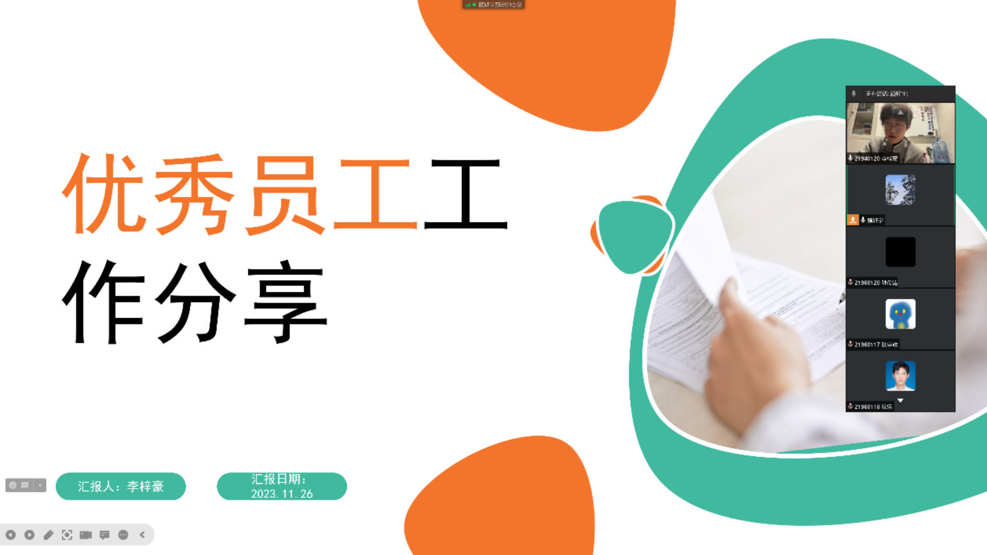 在交流分享会之初,李梓豪同学介绍了所在实习单位的基本情况,并结合自身的实习经历,从不同的角度出发,针对实习工作内容、实习经验感悟、专业能力提升、为人处事态度等多方面进行了经验的分享。随后,同学们就实习工作中相关问题和注意事项展开了交流。