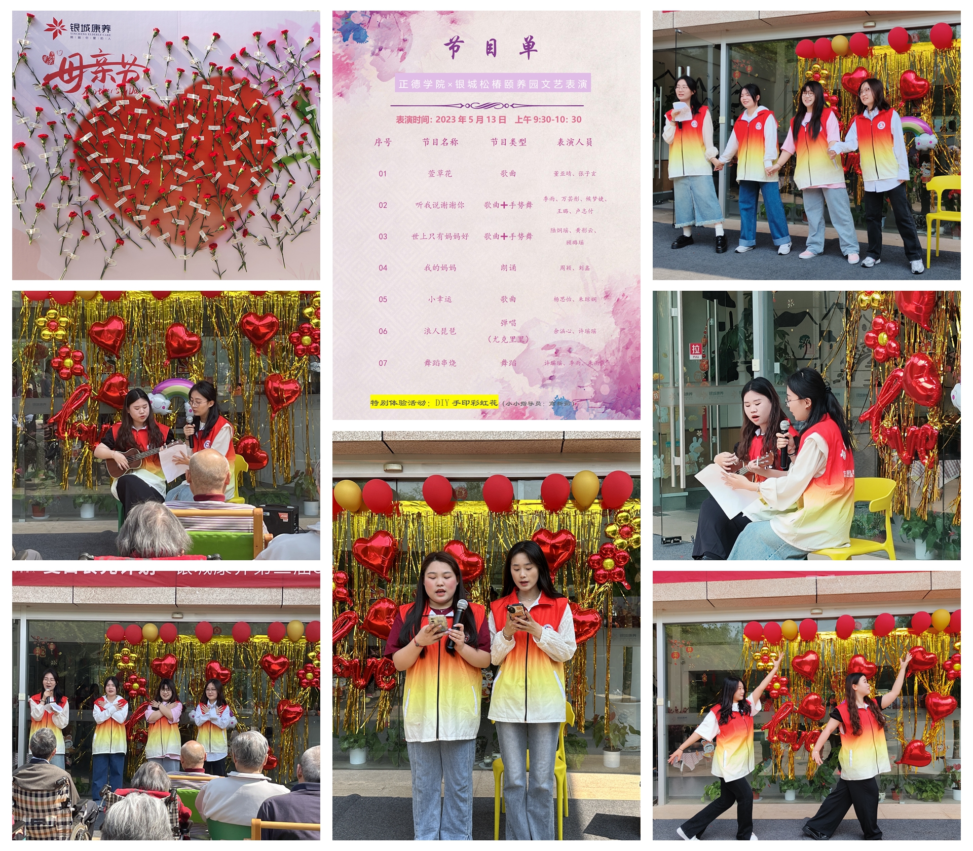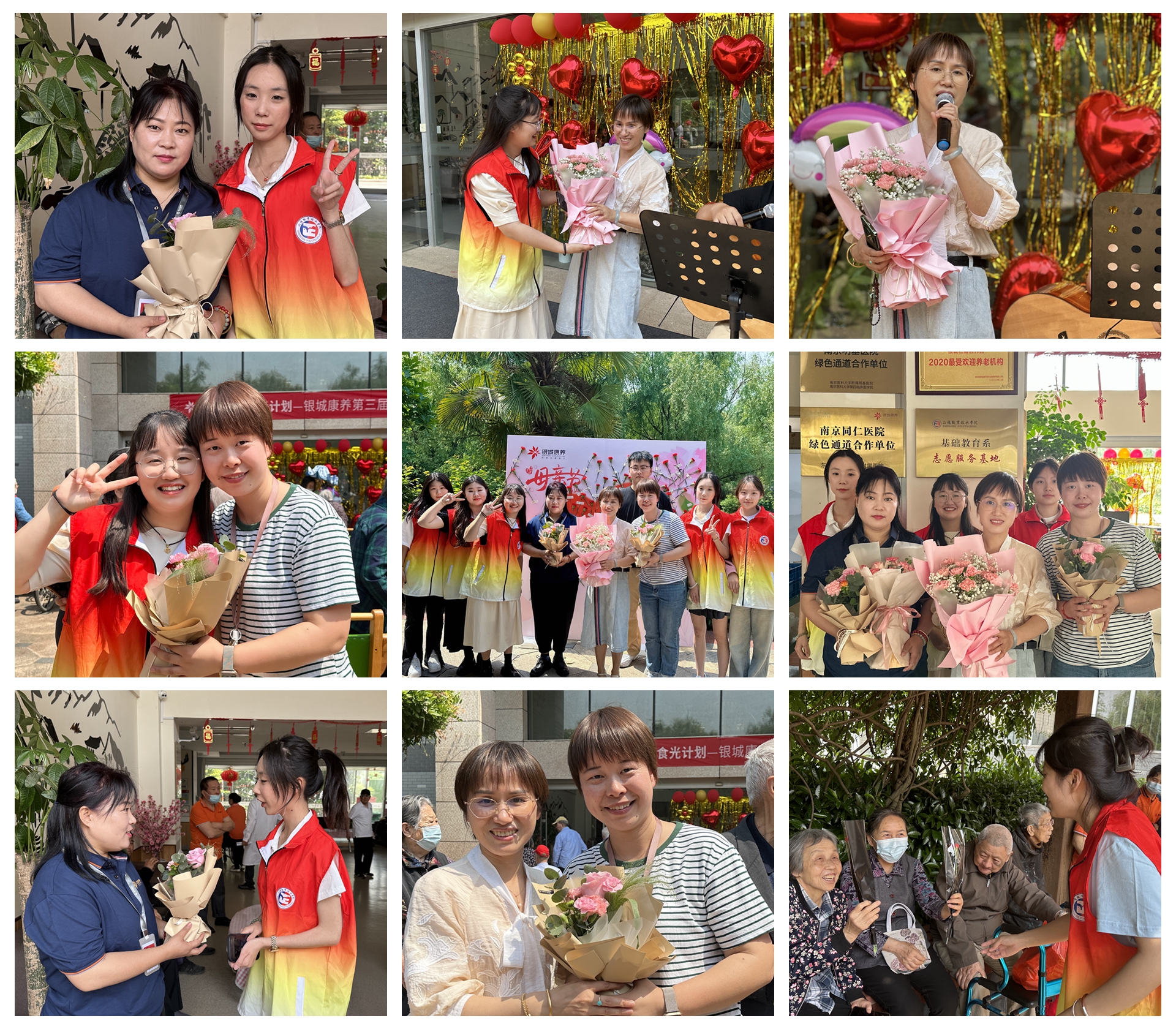 演出的最后一个节目是志愿者们一起合唱了《陪我长大》,并给老人们、院长、副院长和护工阿姨献上了提前准备好的康乃馨。在场的每个人脸上都露出了灿烂的笑容。
